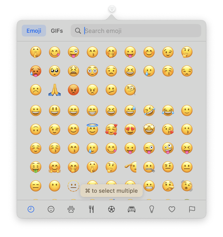 Emojibar is a tiny Mac menubar app that makes finding and copying emojis and GIFs super easy. It learns which ones you use most and puts them first for easy access.